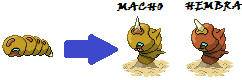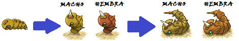 Como pueden notar, el de la derecha es el macho y la de la izquierda la hembra. Aquí con todas sus evo: Gusanito-Pinchtrap (nombre oficial)-Sin nombre XD:
